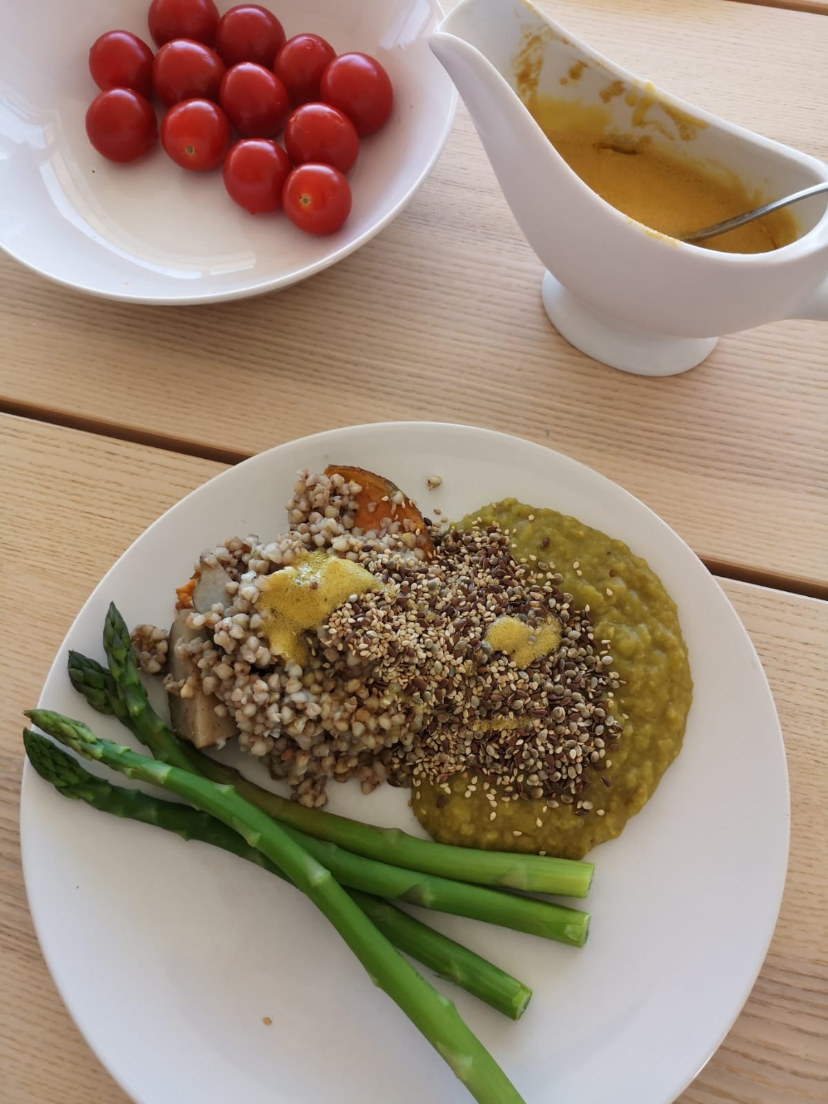 | 19.15 | Diner Salade craquante chou rouge et noix Millet-poireaux au tofu Flan lait d'amandes-poire |